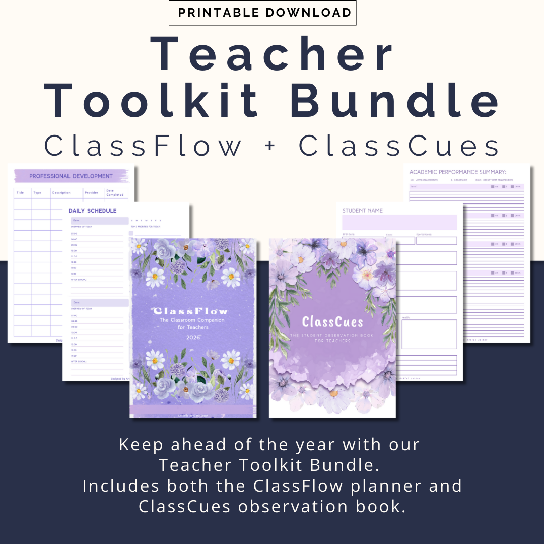 Our teacher planner: ClassFlow + our student observation book: ClassCues!